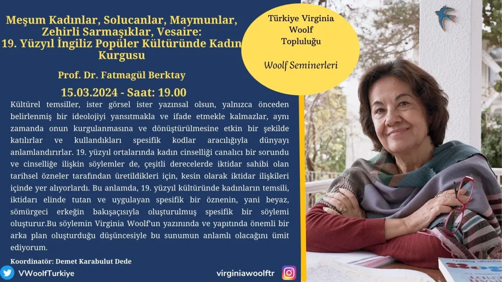 Kültürel temsiller, ister görsel ister yazınsal olsun, yalnızca önceden belirlenmiş bir ideolojiyi yansıtmakla ve ifade etmekle kalmazlar, aynı zamanda onun kurgulanmasına ve dönüştürülmesine etkin bir şekilde katılırlar ve kullandıkları spesifik kodlar aracılığıyla dünyayı anlamlandırırlar. 19. yüzyıl ortalarında kadın cinselliği canalıcı bir sorundu ve cinselliğe ilişkin söylemler de, çeşitli derecelerde iktidar sahibi olan tarihsel özneler tarafindan üretildikleri için, kesin olarak iktidar ilişkileri içinde yer alıyorlardı. Bu anlamda, 19. yüzyıl kültüründe kadınların temsili, iktidarı elinde tutan ve uygulayan spesifik bir öznenin, yani beyaz, sömürgeci erkeğin bakışaçısıyla oluşturulmuş spesifik bir söylemi oluşturur. Bu söylemin Virginia Woolf’un yazınında ve yapıtında önemli bir arka plan oluşturduğu düşüncesiyle bu sunumun anlamı olacağını ümit ediyorum.